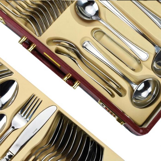 Набор столовых приборов 72 предмета, глянец. Высококачественная нержавеющая сталь. Можно мыть в посудомоечной машине.