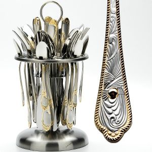 Столовый набор MB 23096 из 25 предметов. Высококачественная нержавеющая сталь 18/10, подставка из нержавеющей стали, столовые ложки - 6 шт., вилки - 6 шт., ножи - 6 шт., чайные ложки - 6 шт.