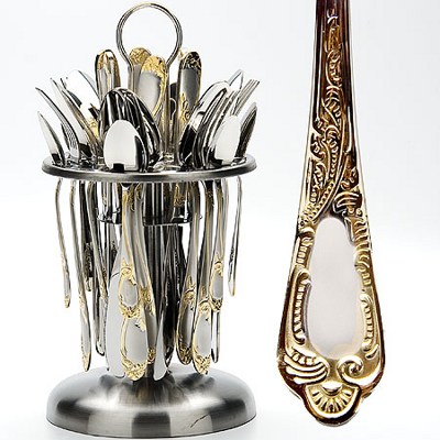Столовый набор MB 23098 из 25 предметов. Высококачественная нержавеющая сталь 18/10, подставка из нержавеющей стали, столовые ложки - 6 шт., вилки - 6 шт., ножи - 6 шт., чайные ложки - 6 шт.