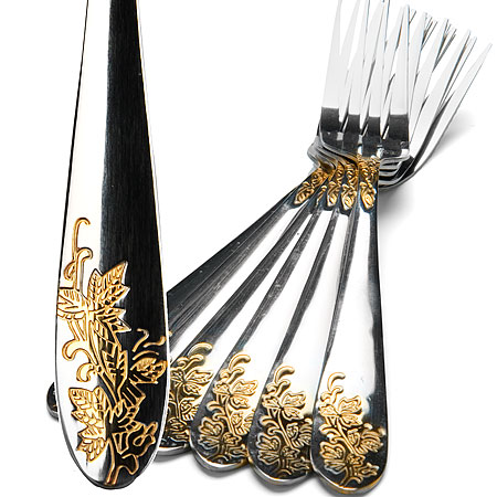 Набор из 6-ти столовых вилок MAYER&BOCH выполнен из высококачественной нержавеющей стали, которая проходит тщательный технический контроль. Качественная полировка обеспечивает высокую степень гигиеничности приборов. Приборы из нержавеющей стали отличаются высокими антикоррозионными свойствами и значительной устойчивостью к воздействию кислот и щелочей. Такая сталь не изменяет вкус и цвет пищи, не выделяет вредных веществ. Ручки вилок украшены элегантным золотым узором, выполненным по технологии плазменного напыления и обеспечивающим высокую износостойкость покрытия. Красивый и элегантный набор столовых вилок MAYER&BOCH станет настоящим украшением любого праздничного или обеденного стола, а эстетичность столовых приборов удовлетворит запросы даже самых требовательных и взыскательных покупателей. Подходит для мытья в посудомоечной машине.