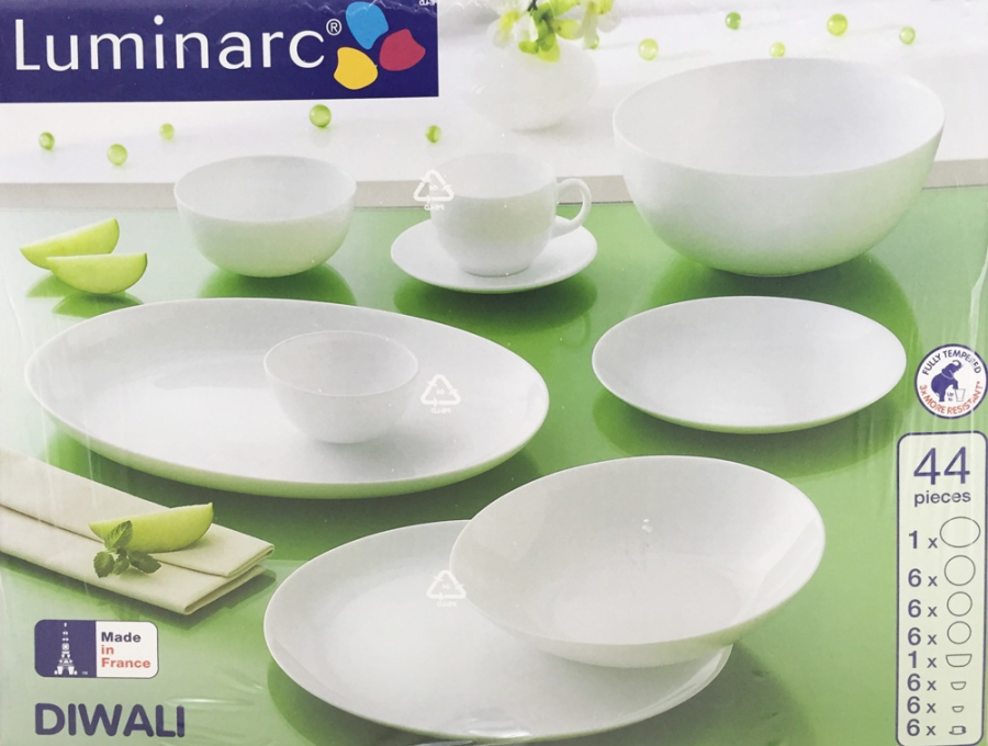 Столовая посуда Luminarc изготавливается из закаленного стекла, в процессе изготовления упрочняясь более чем в три раза по сравнению со стандартным стеклом. Так же к плюсам данного материала можно отнести абсолютно гладкую поверхность, препятствующую проникновению бактерий и посторонних запахов в посуду. Посуду Luminarc можно использовать в микроволновой печи, а так же мыть впосудомоечной машине. Посуда Luminarc разработана для постоянного использования, рисунок не теряет яркость, поверхность отлично держит тепло.