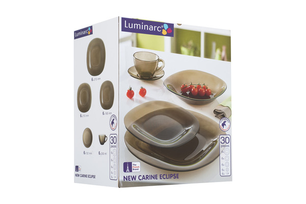 Столовая посуда Luminarc изготавливается из закаленного стекла, в процессе изготовления упрочняясь более чем в три раза по сравнению со стандартным стеклом. Так же к плюсам данного материала можно отнести абсолютно гладкую поверхность, препятствующую проникновению бактерий и посторонних запахов в посуду. Посуду Luminarc можно использовать в микроволновой печи, а так же мыть впосудомоечной машине. Посуда Luminarc разработана для постоянного использования, рисунок не теряет яркость, поверхность отлично держит тепло.