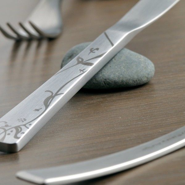 Из нержавеющей стали 18/10 . Полированная поверхность обладает защитными свойствами, гигиенична, ее легко чистить. Лезвие ножа с мелкой пилкой закалено по специальной технологии и долго сохраняет режущие свойства. Рекомендуется мыть вручную.