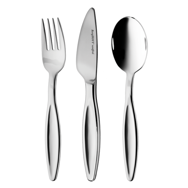 Детский набор столовых приборов Berghoff Folio Kids 3 пр. 1204032 - авторская детская линия дизайнера Ральфа Крамера. Столовые приборы изготовлены из высококачественной нержавеющей стали 18/10. Размеры и форма продуманы до мелочей. Набор включает самые необходимые приборы. Форма и внешний вид ориентированы на детей старшего возраста.