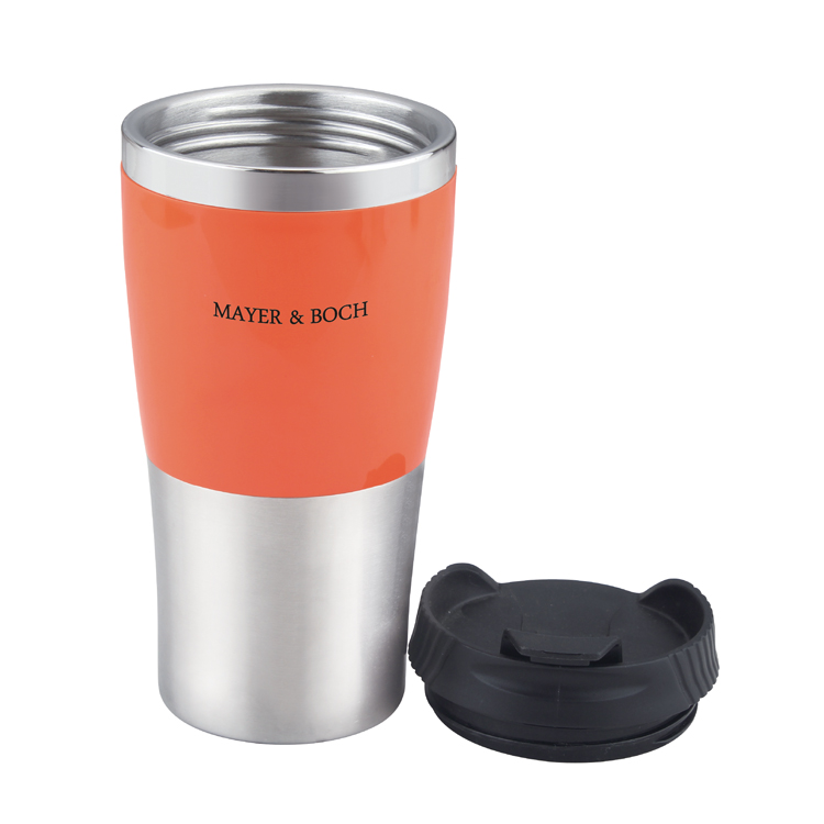 Термокружка MB 25408, объем 0.5 л. Изготовлена из высококачественной нержавеющей стали, крышка из черного пластика. Благодаря конструкции двойной стенки удерживает тепло до 4 часов, холод до 10.