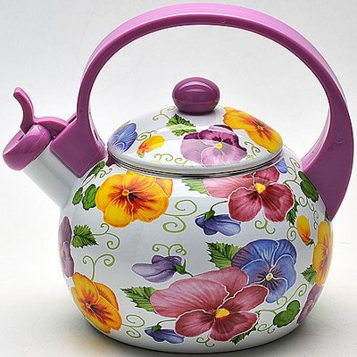 Чайник со свистком МВ 22500. Эмалированное покрытие, удобная фиксированная пластиковая ручка. Подходит для всех видов кухонных плит. Объем – 2,2 л.