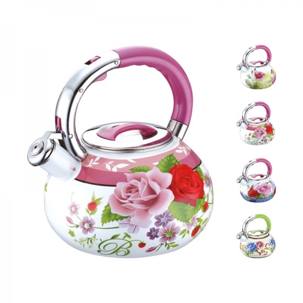 Чайник со свистком Peterhof PH 15609. Эмалированное покрытие. Удобная ручка из бакелита. Подходит для всех видов кухонных плит, включая индукционные. Можно мыть в посудомоечной машине. Емкость – 3,0 л.