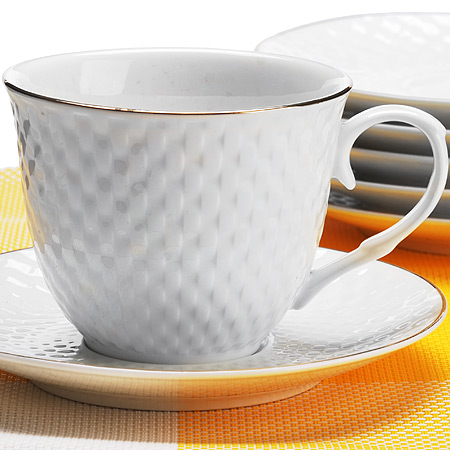 Чайный набор LORAINE на 6 персон, изготовленный из высококачественного костяного фарфора изысканного белого цвета, состоит из 6-ти чашек и 6-ти блюдец. Изделия набора украшены тонкой золотой каймой и имеют красивый и нежный дизайн. Набор придется по вкусу и ценителям классики, и тем, кто предпочитает утонченность и изысканность. Он настроит на позитивный лад и подарит хорошее настроение с самого утра. Набор упакован в подарочную упаковку. Такой чайный набор станет прекрасным украшением стола, а процесс чаепития превратится в одно удовольствие! Это замечательный выбор для подарка родным и друзьям!