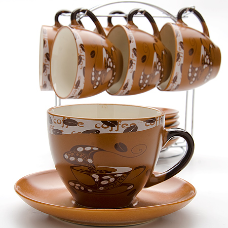 набор чашек на подставке 13пр. MB 23540. Материал чашек и блюдец: керамика, подставка: металл, объём 220 мл.