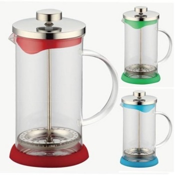 Заварник френч-пресс PH 12525. Термостойкое стекло, пресс и сеточка-фильтр из нержавеющей стали, силиконовое основание, объем 600мл., разные расцветки. Стильный, нестандартный френч-пресс с ручкой из стекла.