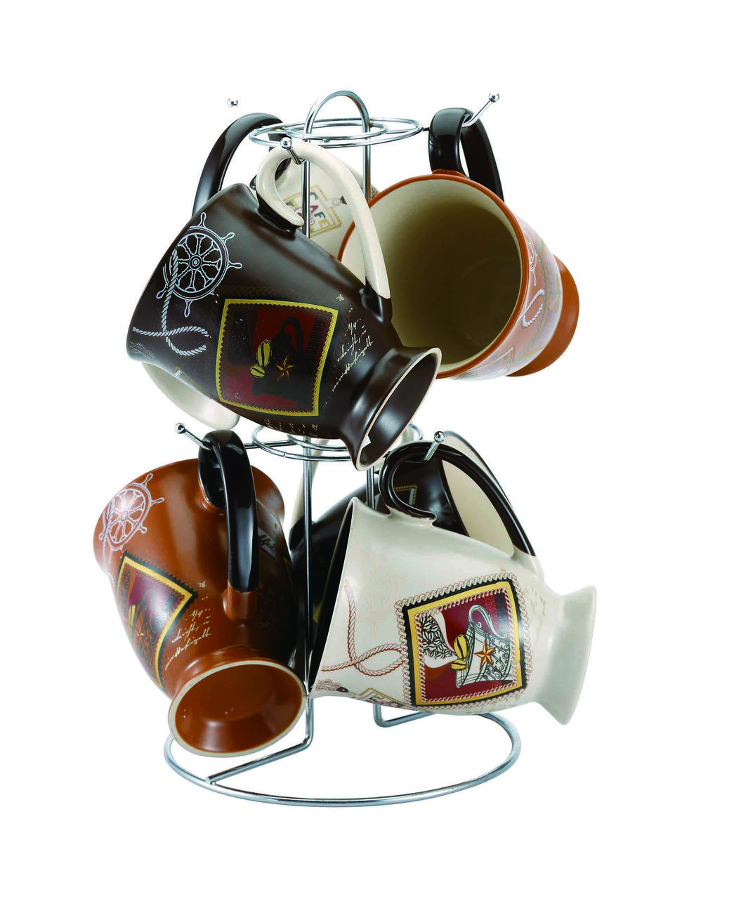 Набор кружек Wellberg WB 42020 из 7 пр.: 6 керамических кружек 280 мл на металлической подставке.