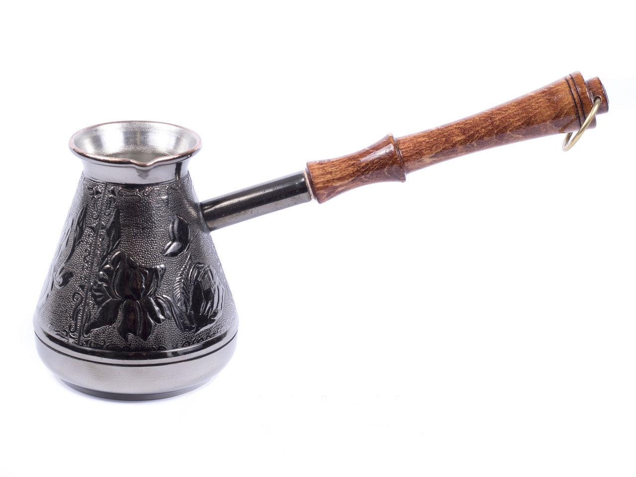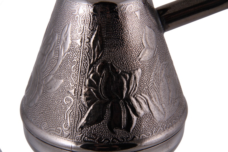 Турка изготовлена из меди. Этот металл обеспечивает равномерный нагрев всей поверхности и удержание тепла. Чтобы исключить единственный недостаток меди – склонность к окислению, внутренняя сторона конструкции имеет оловянное покрытие.
