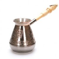 Этот металл обеспечивает равномерный нагрев всей поверхности и удержание тепла. Чтобы исключить единственный недостаток меди – склонность к окислению, внутренняя сторона конструкции имеет оловянное покрытие. Все изделия имеют удобную деревянную ручку, которая не раскаляется в процессе приготовления кофе. Благодаря надежному креплению и особой конструкции она выдерживает многократное нагревание и очень крепко держится.